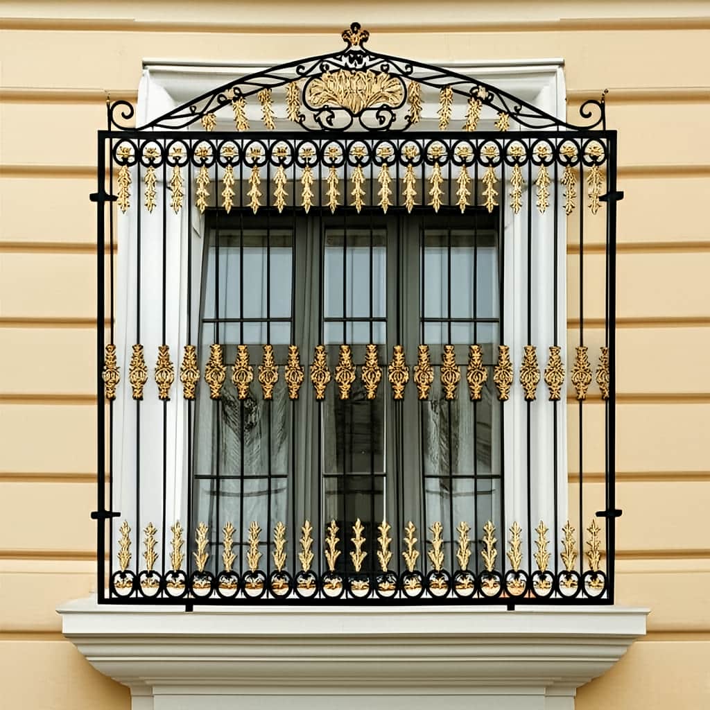 حفاظ پنجره مدل افشان + امنیت ترکیب میله های فولادی و تزئینات سنگین طلایی امنیت بالا را در برابر نفوذ فراهم می کند.