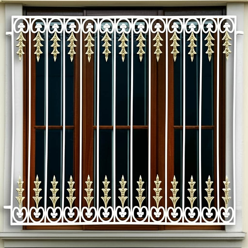 حفاظ پنجره مدل افشان + رنگ رنگ آمیزی کوره ای الکترواستاتیک سفید با تزئینات طلایی آبکاری شده ترکیب اصلی این مدل است.