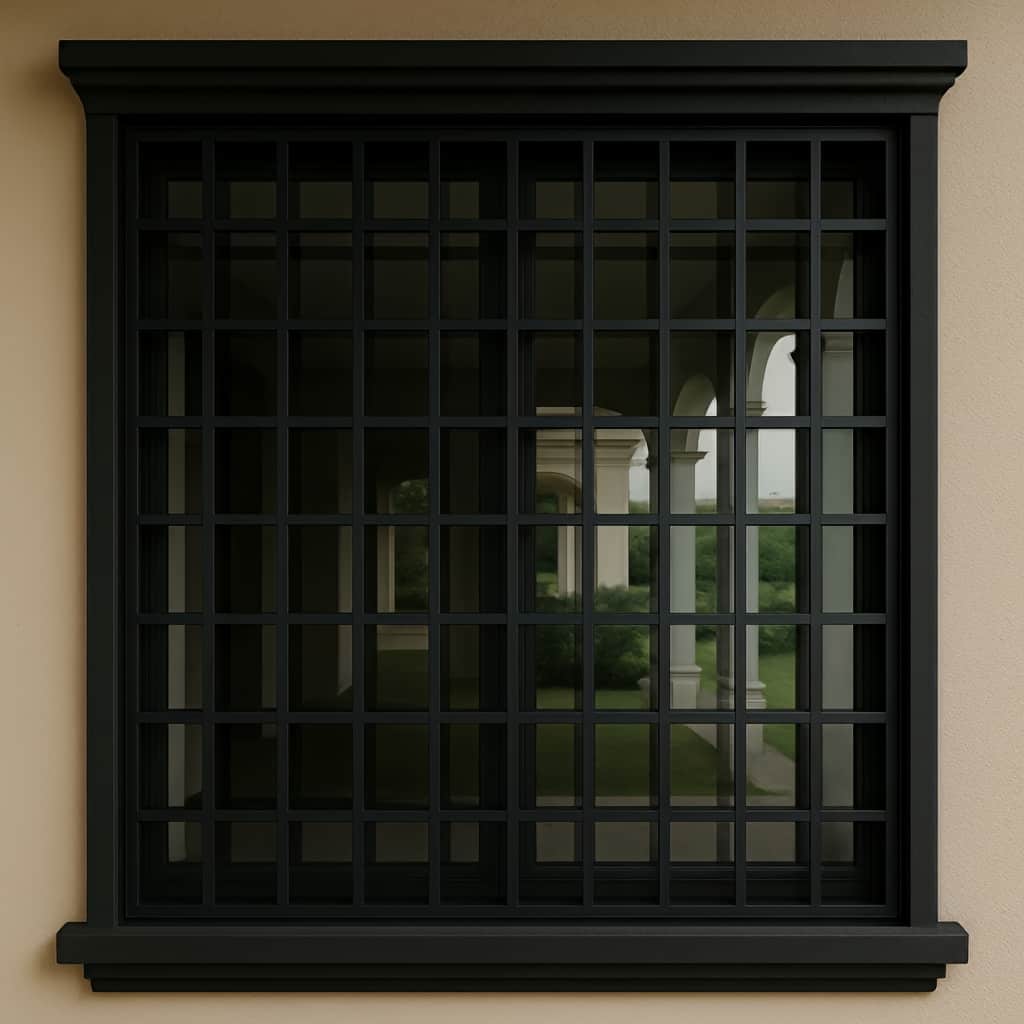 حفاظ پنجره مدل مربعی + رنگ دلخواه این مدل قابلیت اجرا در رنگ های مختلف مانند سفید, مشکی یا طلایی را دارد و به راحتی با نمای ساختمان هماهنگ می شود.