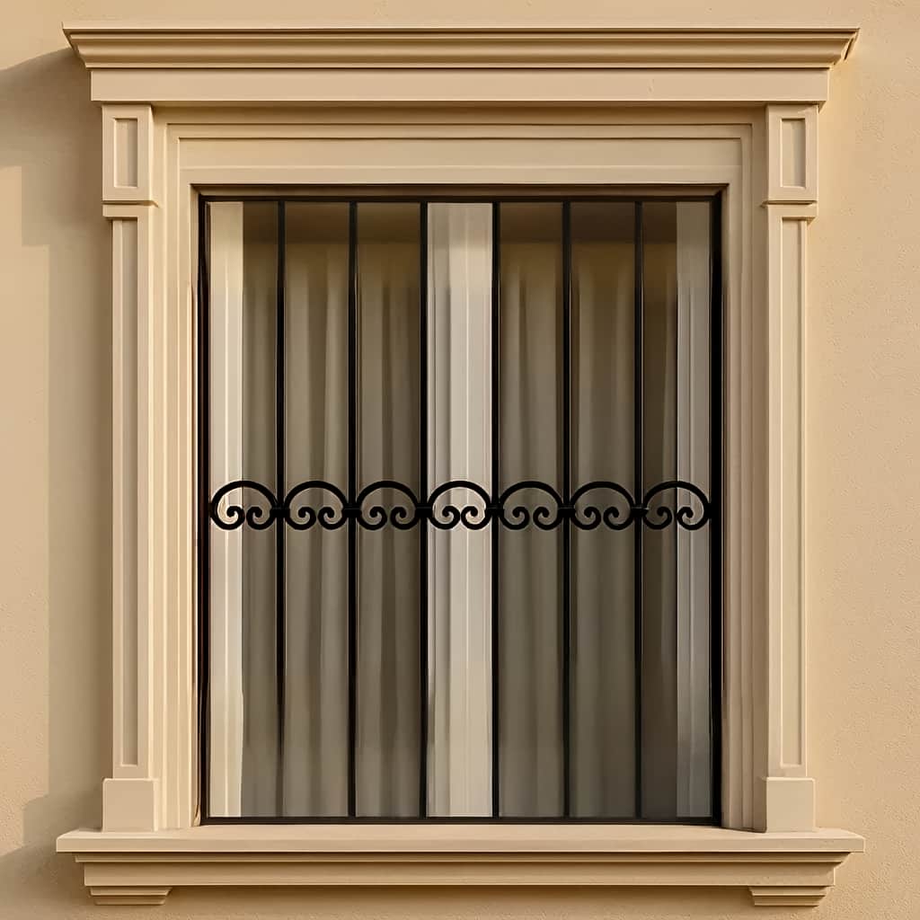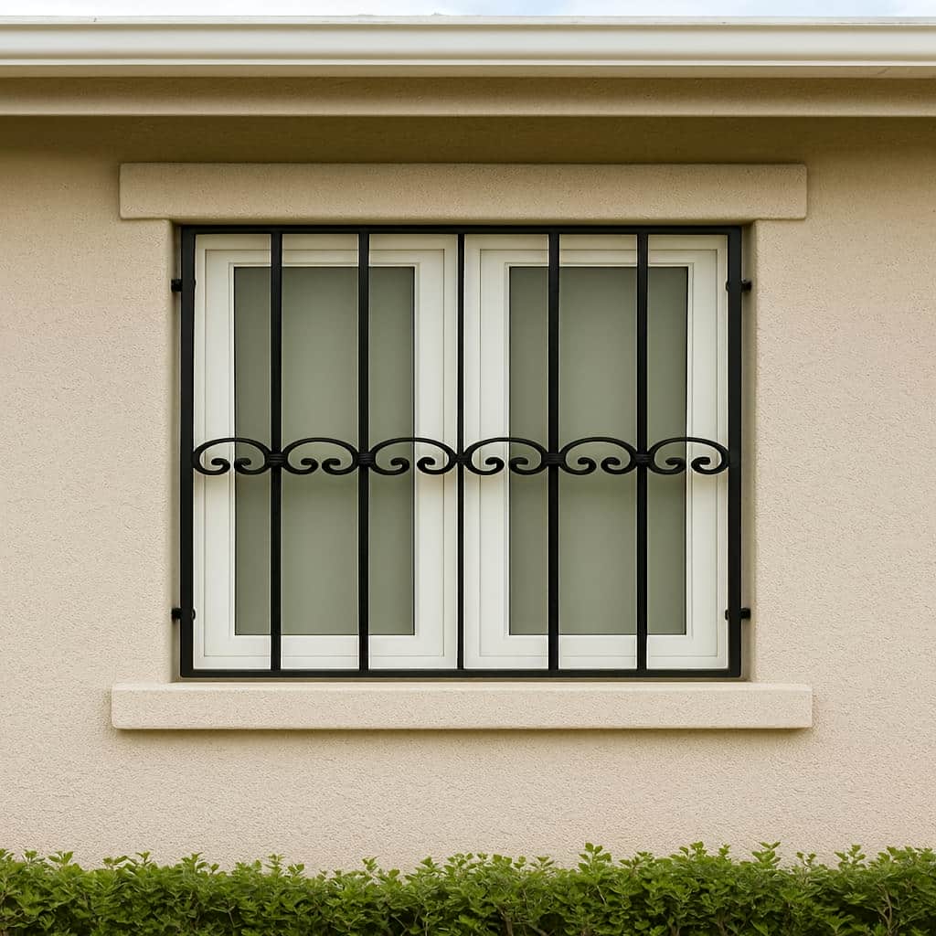 اضافه کردن قطعات فرفورژه در بخش قوس ها به حفاظ پنجره مدل نعل اسبی یا قلوه ای جلوه ای سنتی و ایمن می دهد. |