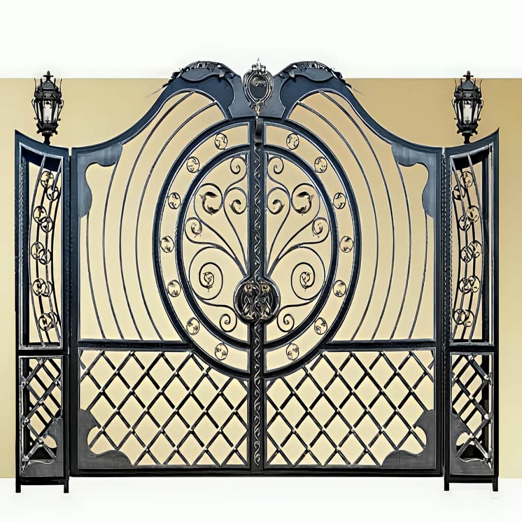 درب دایره مصور با ساختار فرفورژه سنگین, ترکیبی از ظرافت بصری و استحکام صنعتی است. قطعات فرفورژه با دقت زیاد قالب گیری و به صورت دستی مونتاژ می شوند تا فرم های منحنی کاملاً دقیق و هم مرکز باشند. ساختار فولادی در برابر فشار و ضربه بسیار مقاوم بوده و جوشکاری CO₂ موجب یکپارچگی و ایمنی بیشتر می شود. این نوع طراحی در پروژه های لوکس و ویلاهای بزرگ بسیار مورد توجه است, زیرا ضمن حفظ امنیت, جلوه ای فاخر و متمایز به نما می دهد.