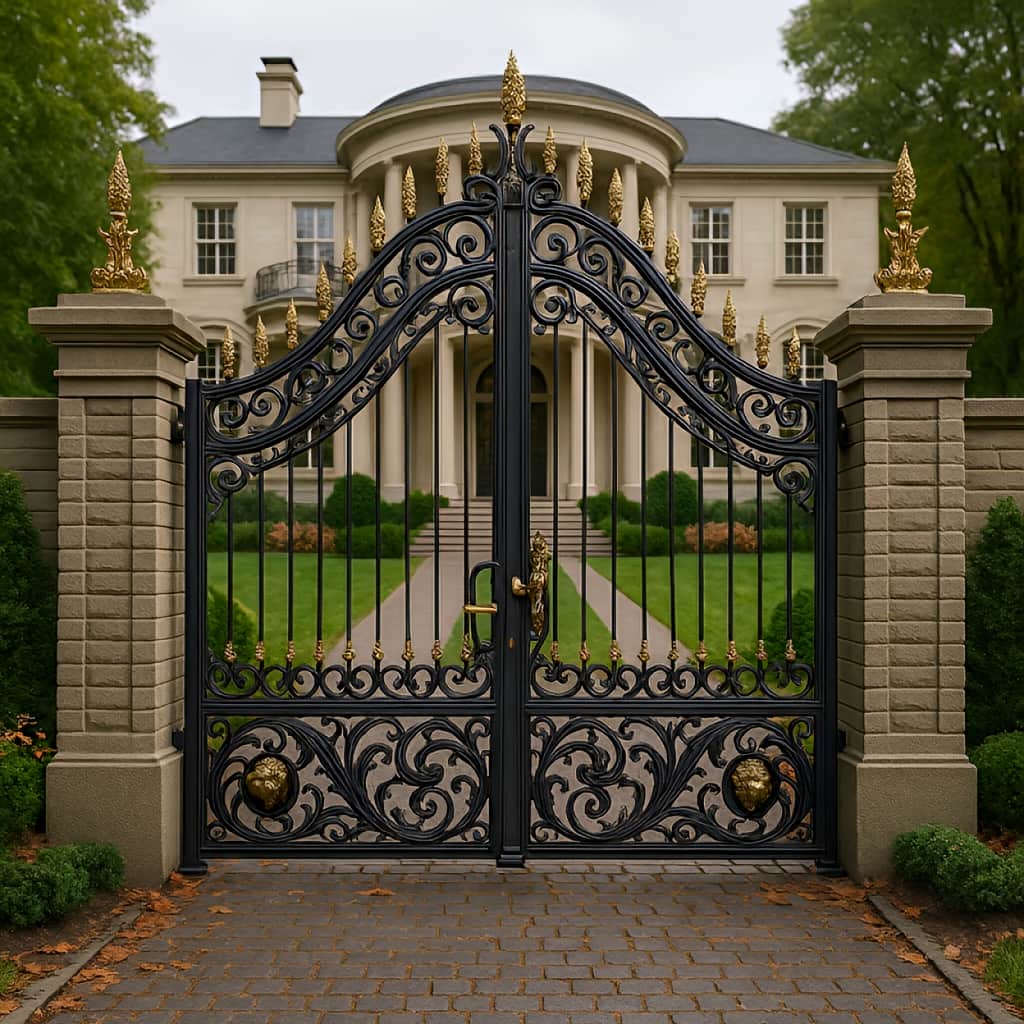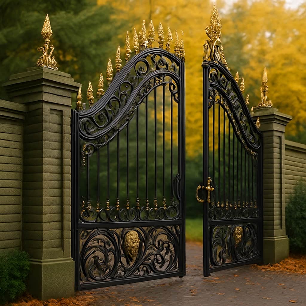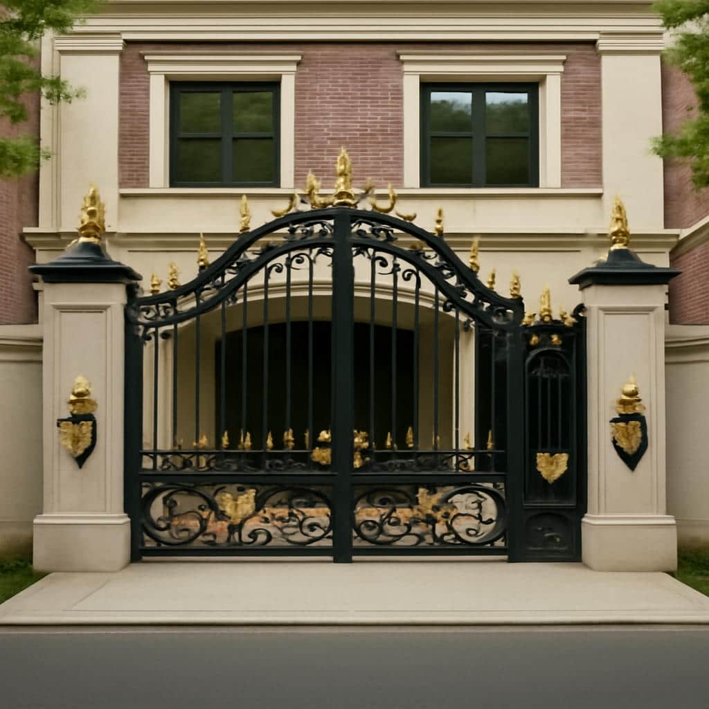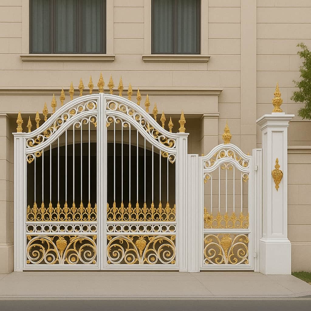 درب سمیه ورودی ویلا و باغ جلوه ای باشکوه به محوطه ورودی می دهد و با طراحی متقارن و خطوط نرم فرفورژه, حس اصالت و شکوه را به مخاطب منتقل می کند. این مدل در رنگ های طلایی و قهوه ای سوخته, هماهنگی کاملی با نماهای رومی یا سنگی دارد. استفاده از فریم فولادی تقویت شده و متریال باکیفیت بالا, دوام آن را در برابر شرایط آب وهوایی مختلف تضمین می کند. همچنین امکان نصب قفل ریموت, جک برقی و سیستم کنترل ورود در این مدل وجود دارد.