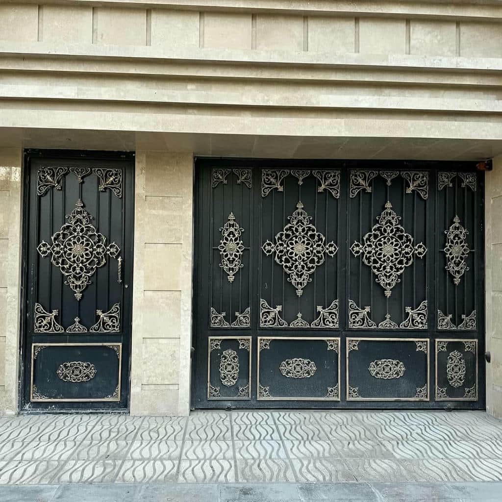 ویژگی های درب صدفی دارای فرم صدفی و گل نرده های فرفورژه دست ساز با ظاهری چشم نواز و کلاسیک.