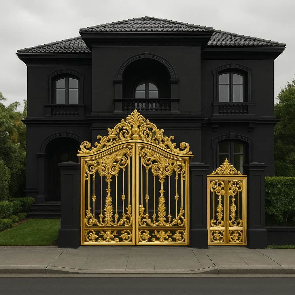درب غنچه ورودی ویلا و ساختمان انتخابی فوق العاده برای ایجاد ورودی ای باشکوه و لطیف است. ترکیب فرم های گل مانند با خطوط نرم فرفورژه, حس طبیعت و آرامش را به فضا می آورد. این مدل در رنگ های روشن مانند سفید و طلایی برای نماهای سنگی یا روشن و در رنگ های تیره برای نماهای مدرن استفاده می شود. طراحی متقارن و تاج بلند آن به زیبایی با نرده و حفاظ های هم طرح هماهنگ می شود و جلوه ای چشم نواز به فضای بیرونی می بخشد.